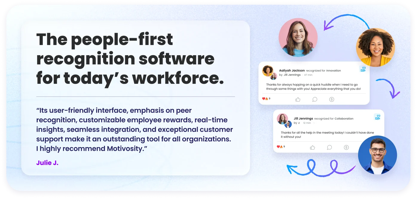 If you’re ready to recognize more consistently, connect your people more deeply, and build a culture they actually want to stay in, we’d love to show you how Motivosity can help.