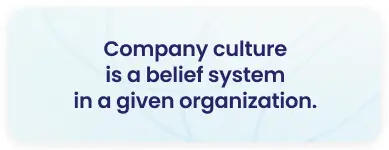 Defined at its most basic level, company culture is a belief system in a given organization. This controls anything from what people say to one another to how they eat their lunches. Company culture is a top-down phenomenon; people in positions of power are the primary progenitors of change.