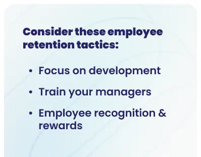 Start by implementing some generalized employee retention tactics: