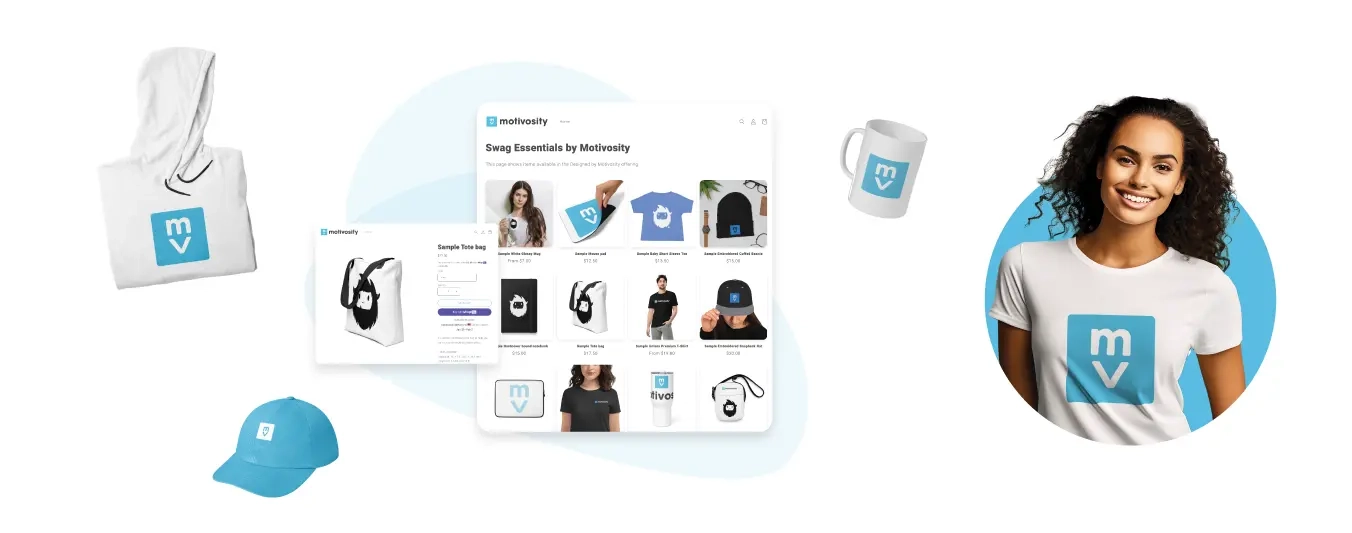 Offer branded merch and swag to your employees. Link your existing swag store and display featured items with a Shopify connector or leverage a partner to create a new, turnkey store. Add custom catalogs with custom swag or hire Motivosity to create a custom swag store that fits your unique needs.
